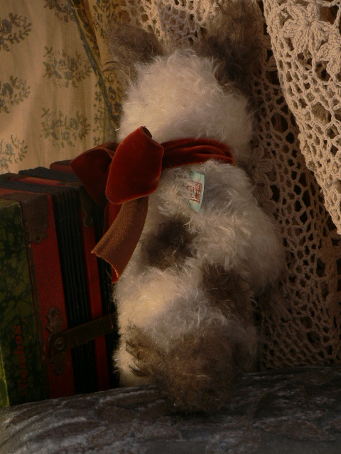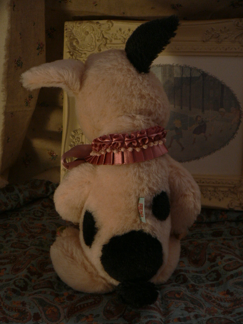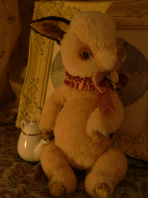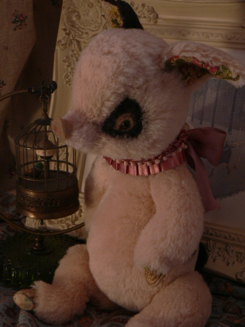 耳裏や蹄にはアンティークのシルク地を使いました。クラシカルな花模様です。