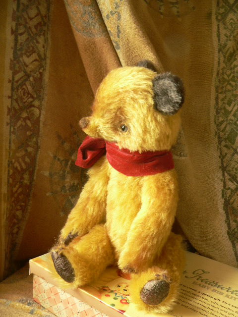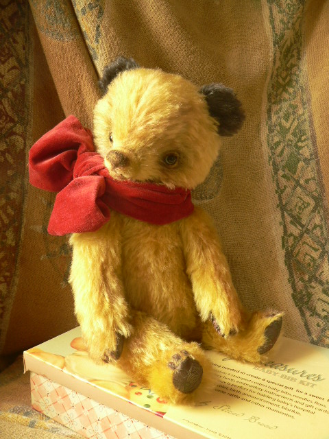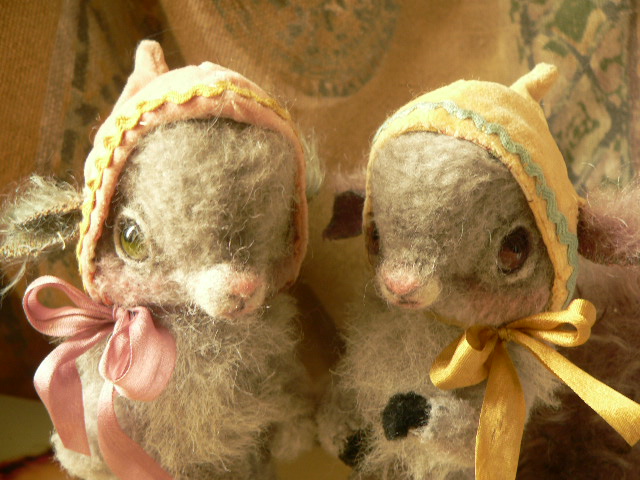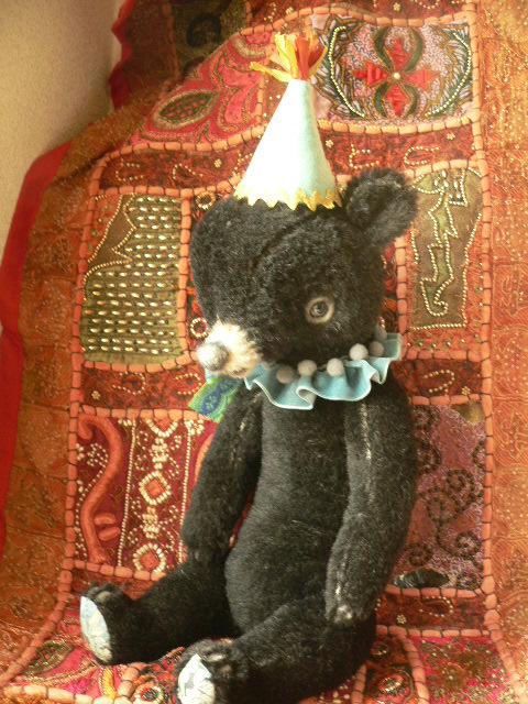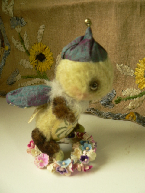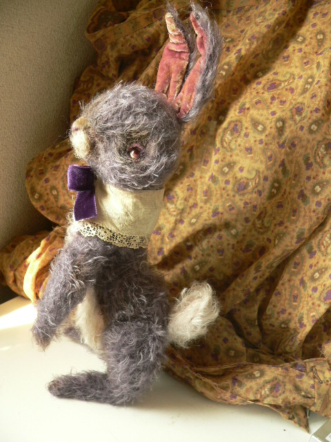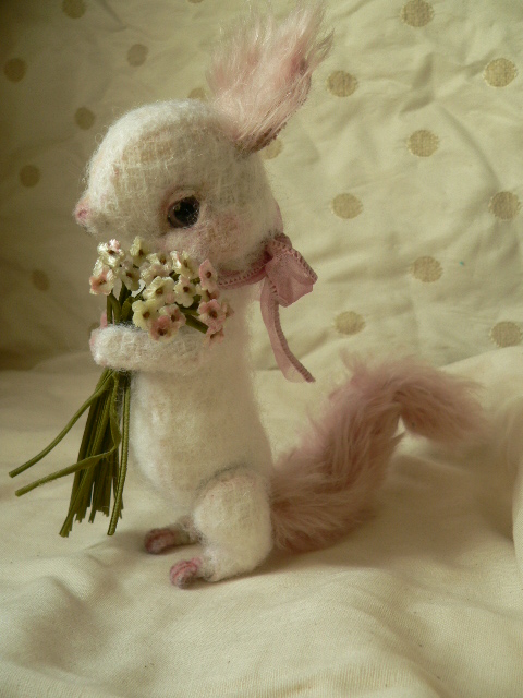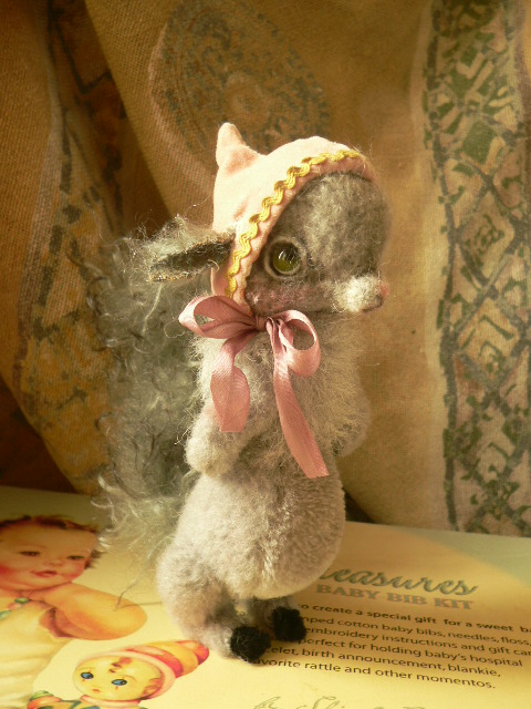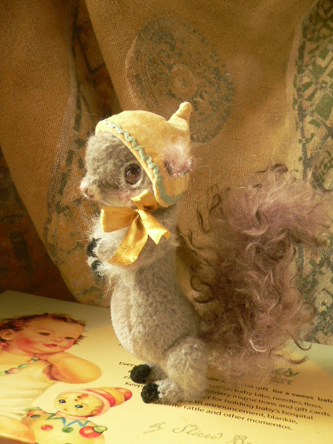 別珍の帽子をかぶっています。手足しっぽはモールで曲がるようになっています。