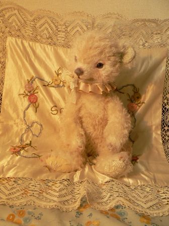 ゴージャスな素材をたっぷりつかった白いベア。
