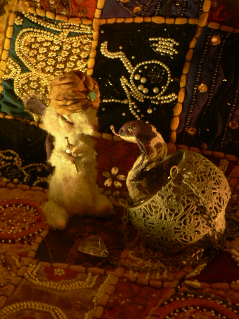 年賀状用に作ったコブラとネズミのへびつかい。ペアの販売です。