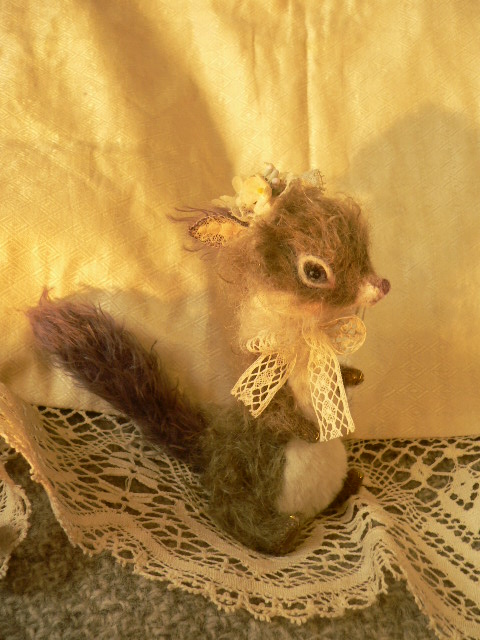お花のボネをつけたリスです。